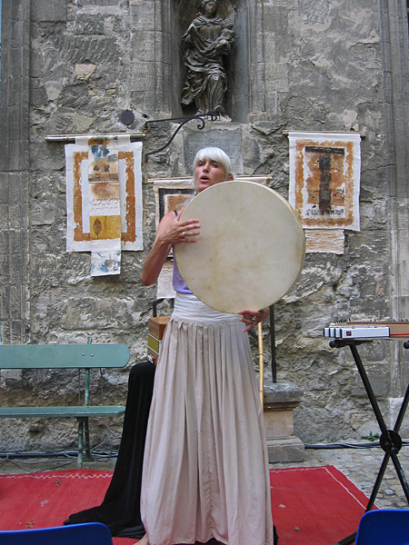 Mise en scène des chants français - occitans de Hombeline. Présentées pendant le Festival d'Avignon en juillet 2010 au Palais du Rourre. Toile à beurre enduite toile et papier rouillé, bitume, sables.