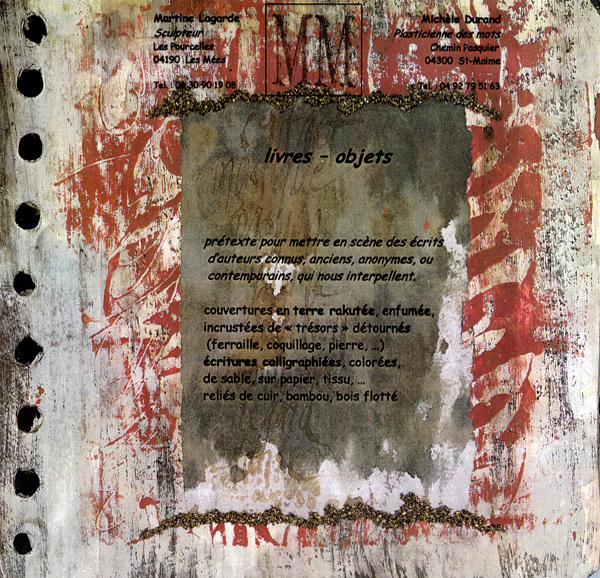 - 2011 : « Livre pauvre » (6 exemplaires) Prieuré de St Cosme